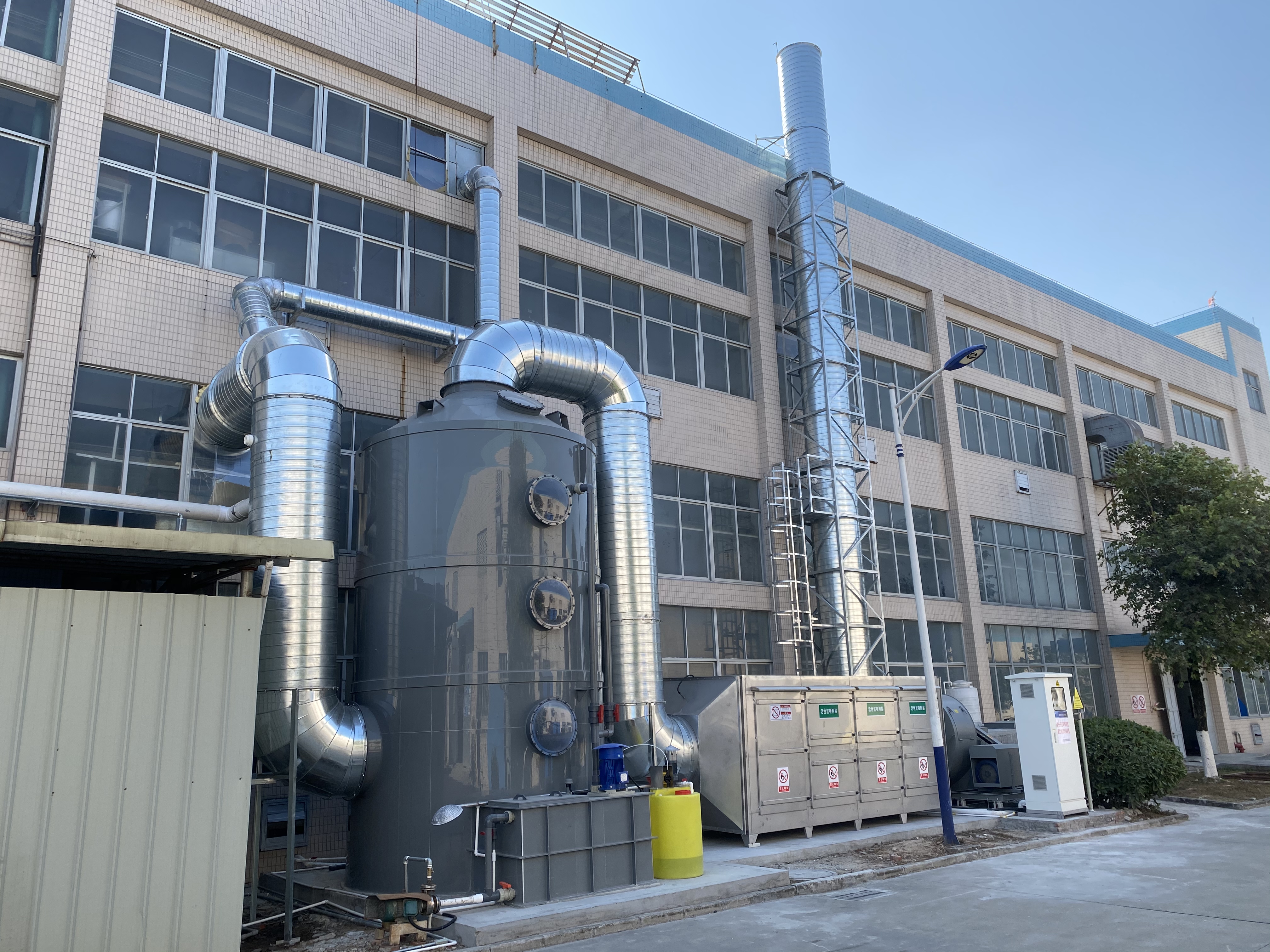 噴淋塔(俗稱:水淋塔)是一種處理煙塵廢氣的濕式環保設備,可適用于發電廠燃燒煙塵、鋼鐵廠、鍋爐燃燒、垃圾燃燒等煙塵廢氣處理,這類的煙氣粉塵容易溶于水,噴淋塔是處理這類煙氣粉塵的不二之選。煙氣粉塵從塔底進入塔內,塔內有填料支撐板,噴淋塔從塔頂噴出液體,液體均勻的分布在塔內和污染物充分接觸,達到凈化的效果,最后塔頂排出。